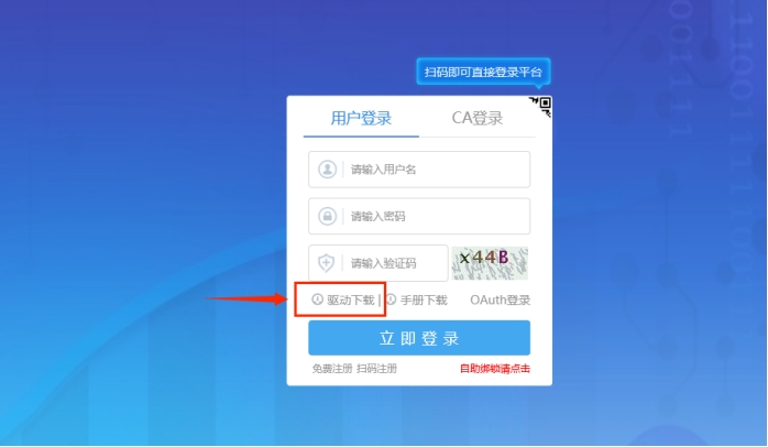 在平台“交易主体登录”界面点击“驱动下载”,或在首页导航栏“办事指南”中“常用工具下载”点击“交易系统驱动下载”。