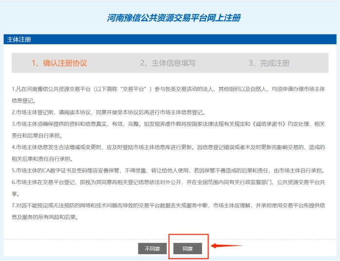 2.2仔细阅读交易主体网上注册协议并点击同意