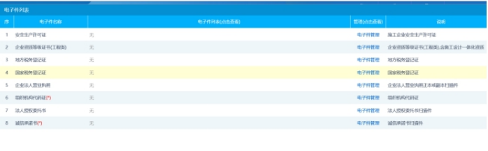 2.6信息补充完毕后,点击“电子件管理”,上传要求必须上传的扫描件(“诚信承诺书”格式详见首页导航栏“办事指南”中对应主体身份栏目)。