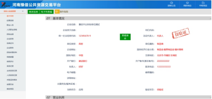 2.8豫信平台管理工作人员会对交易主体 填报的基本信息进行 网上验证 ,请关注 交易主体信息库基本 信息展示页面,查看 验证通 过情况。 (出现待验证状态,请等待交易中心工作人员验证)验证通过后,系统页面会出现 “验证通过”标记,交易主体即可进行网上业务操作。