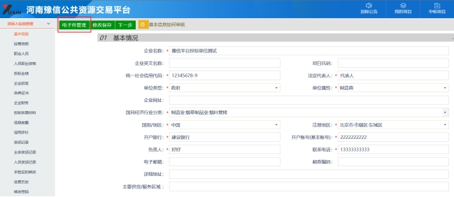 2. 6 、 信息补充完毕后,点击“电子件管理”,上传要求必须上传的扫描件